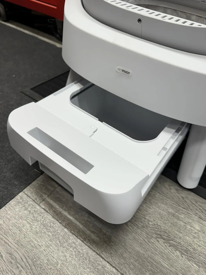 The unit uses built-in sensors to detect when your cat finishes. Once your cat exits, it automatically rakes waste into a sealed drawer, keeping the litter clean and odor-free.